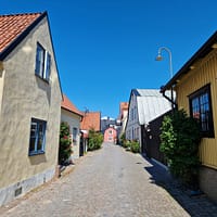 This tour starts by the big tree on the corner of Artilleribacken. Sigge the cat is hiding in the tree, but he'll come down and join you for a walk.