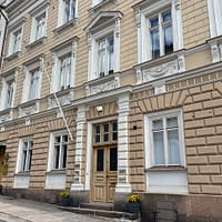 This green stone building has previously been a girl’s high school. The school was founded by teacher Lisa Hagman and the building was designed by architect Elsa Arokallio.